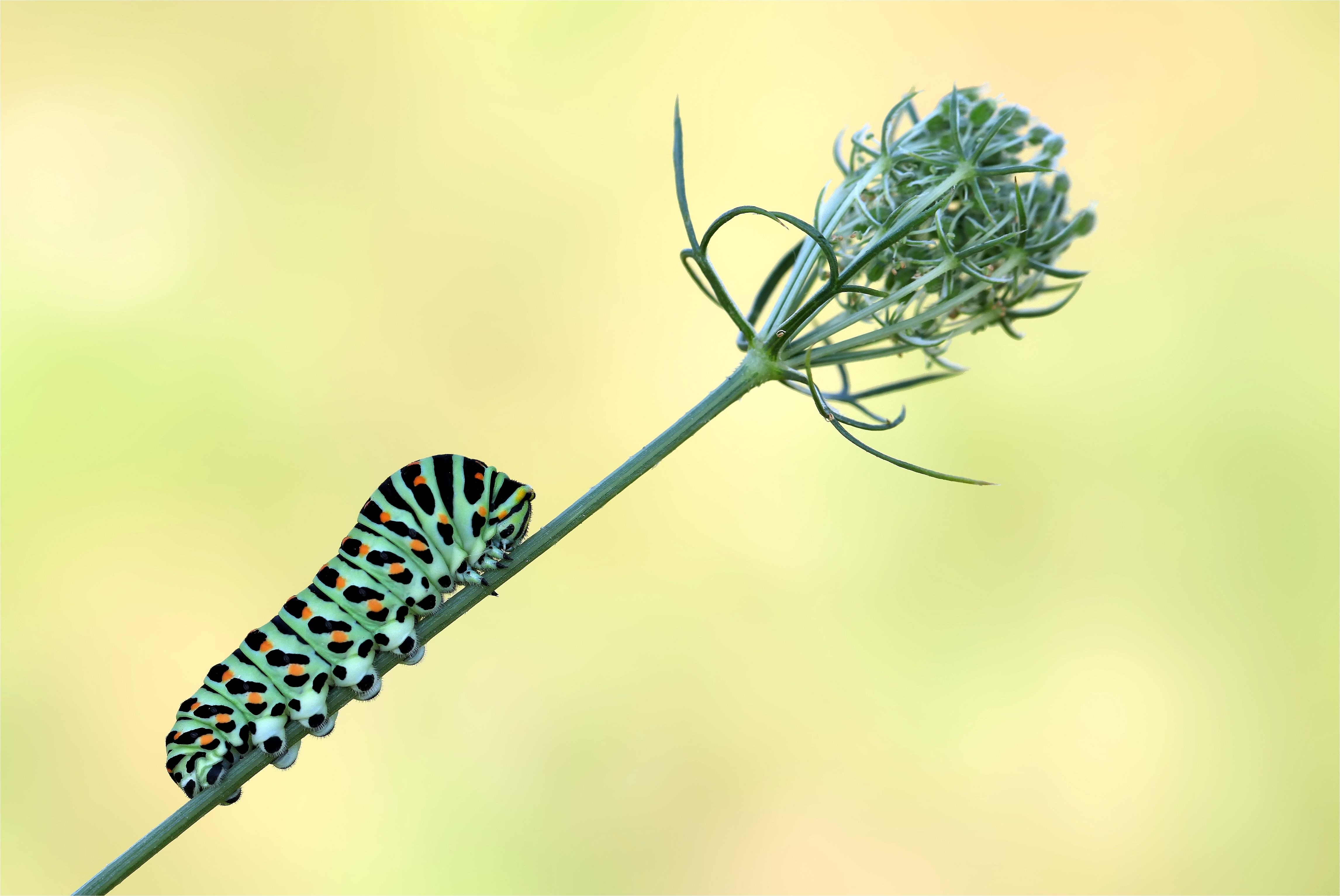 Raupe vom Schwalbenschwanz am Elbdeich auf ihrer Futterpflanze, der Wilden Möhre