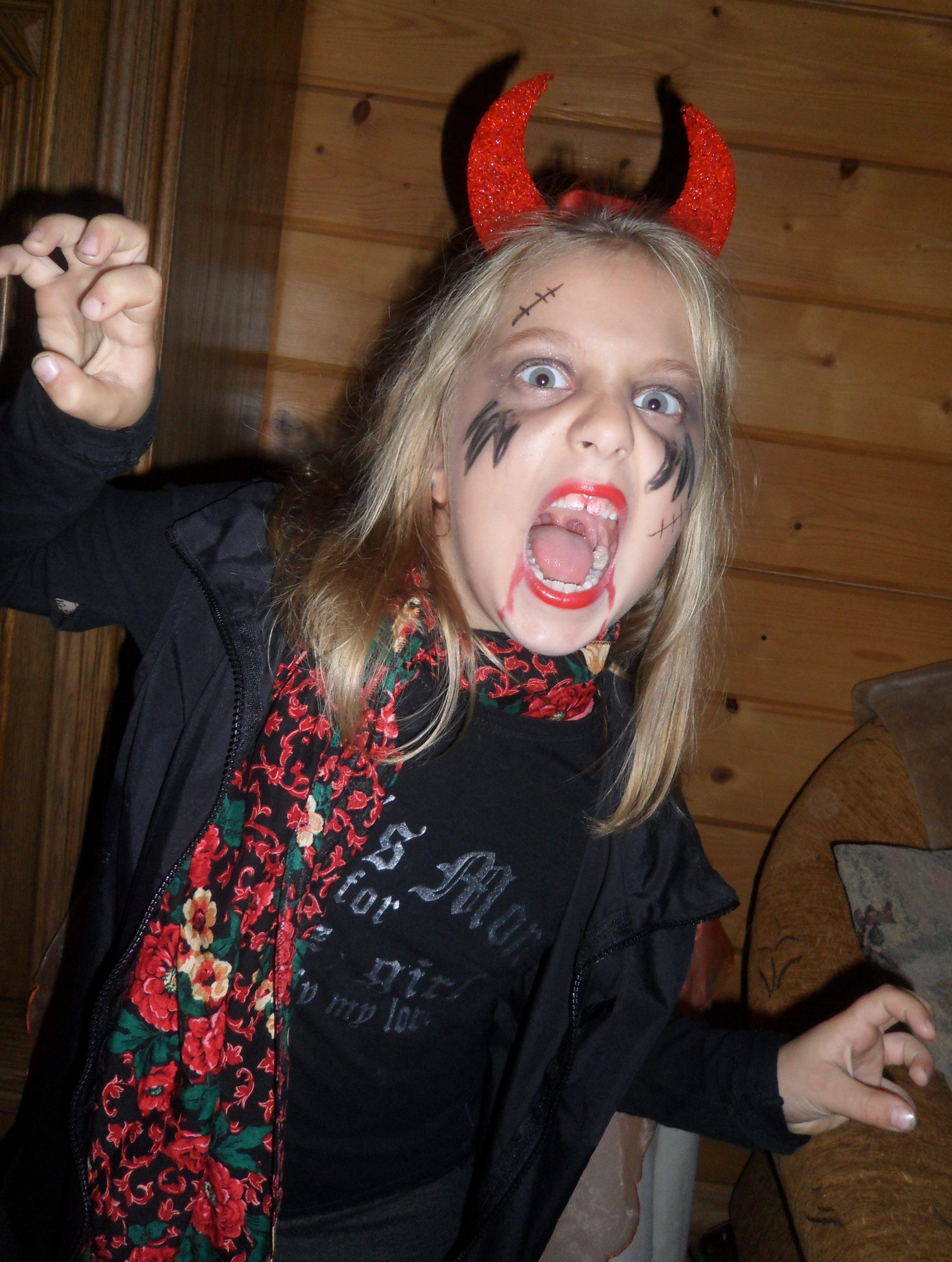 Marta lat 8, stylizacja na halloween - zabawa a przy okazji straszny strój